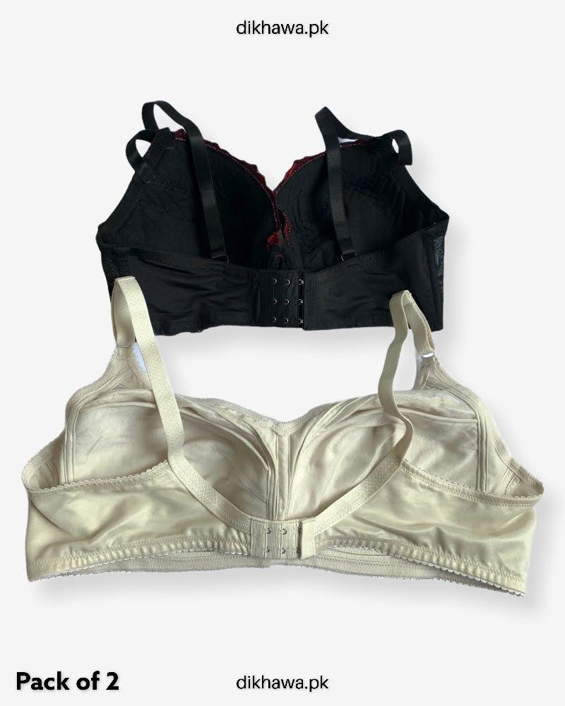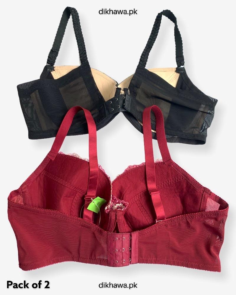 Imported Stocklot Branded Net Pushup Bra - Under Wired - Non Padded Bra - Pack of 2
