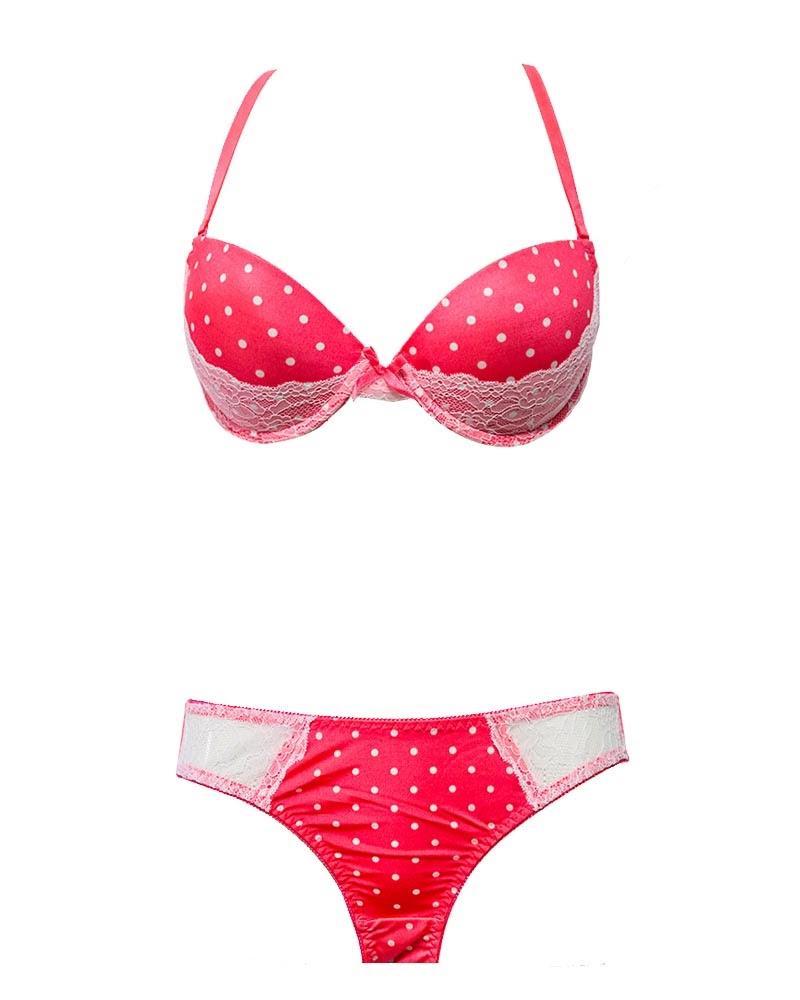Victoria's Secret - Red Polka Dotted Single Padded Pushup Bra And Panty Set The world's best bras. The sexiest lingerie. World's best pushup bras of Victoria's Secret.